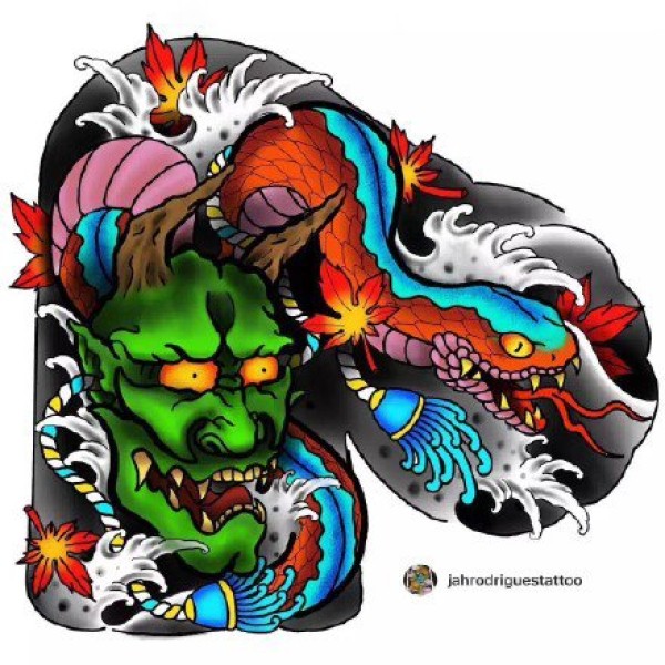 半甲唐狮手稿 传统的9款唐狮主题半甲纹身手稿图片