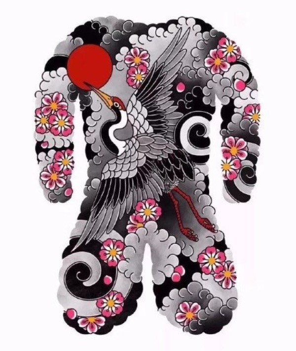 一组满背大气九龙拉棺纹身图案作品和手稿