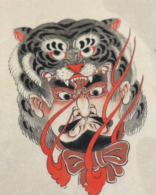 半甲唐狮手稿 传统的9款唐狮主题半甲纹身手稿图片