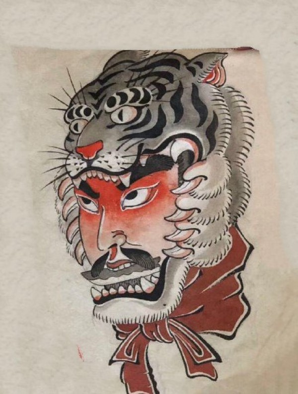 半甲唐狮手稿 传统的9款唐狮主题半甲纹身手稿图片