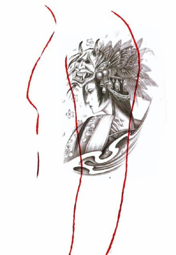 传统艺妓般若纹身图案手稿