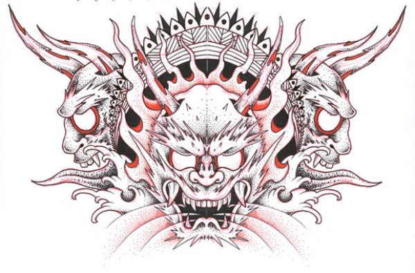 半甲唐狮手稿 传统的9款唐狮主题半甲纹身手稿图片