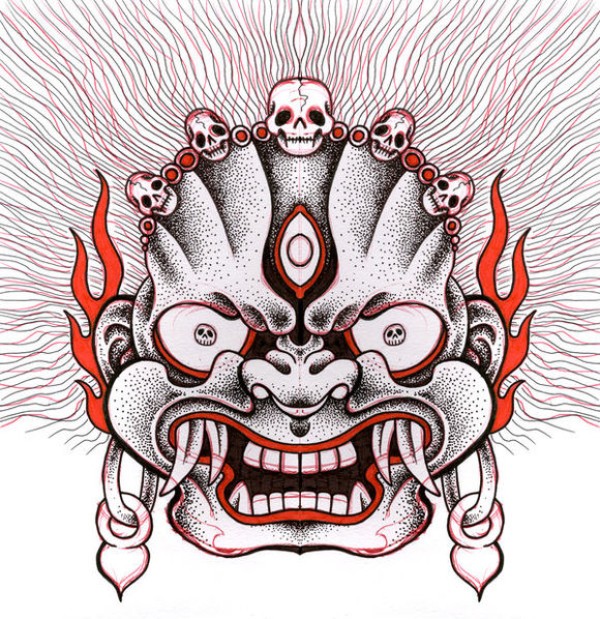 半甲唐狮手稿 传统的9款唐狮主题半甲纹身手稿图片