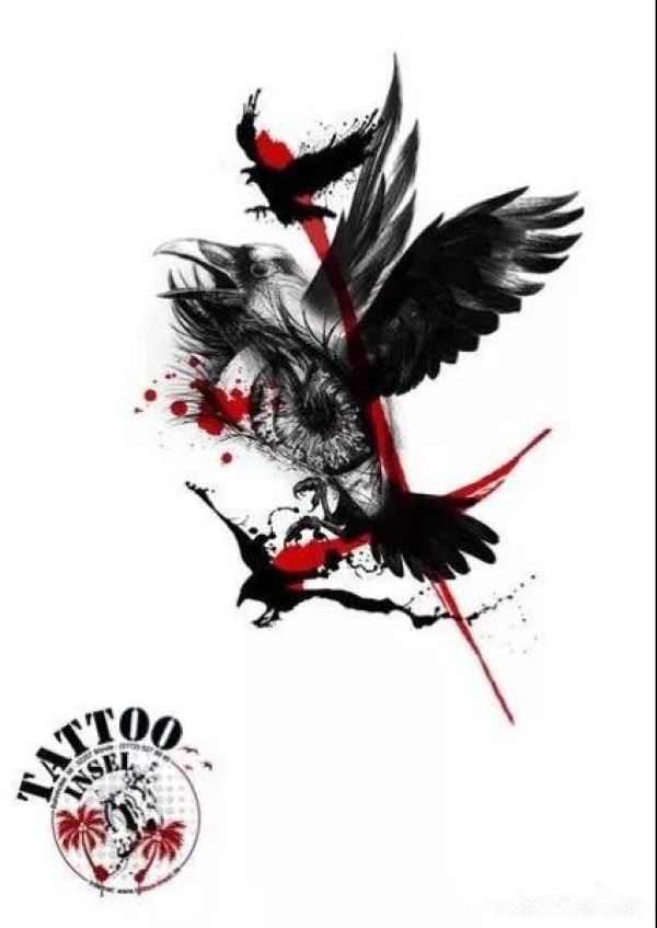 一组红黑色垃圾波尔卡纹身的手稿图片