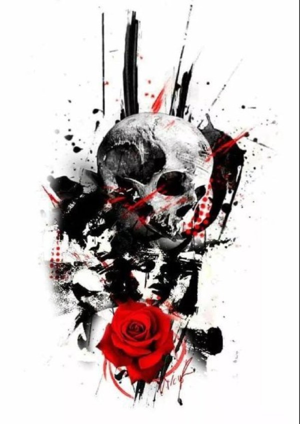 一组红黑色垃圾波尔卡纹身的手稿图片
