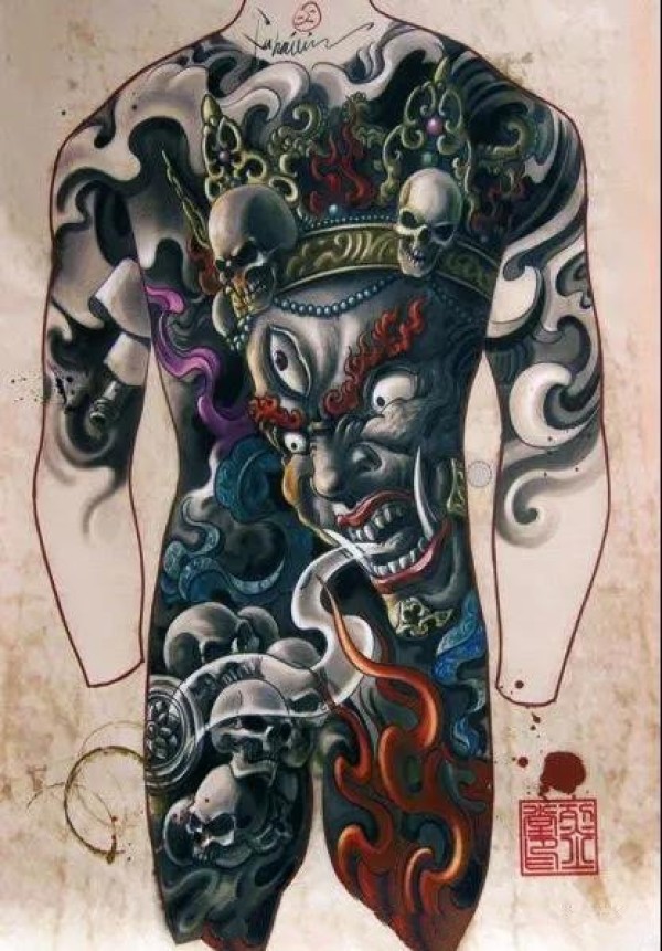 一组满背大气九龙拉棺纹身图案作品和手稿