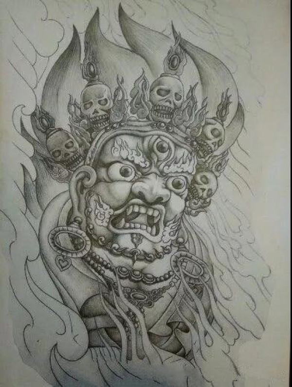 半甲唐狮手稿 传统的9款唐狮主题半甲纹身手稿图片
