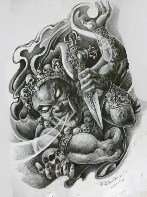 一组满背大气九龙拉棺纹身图案作品和手稿
