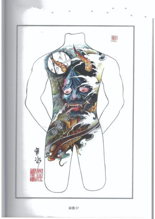 一组满背大气九龙拉棺纹身图案作品和手稿