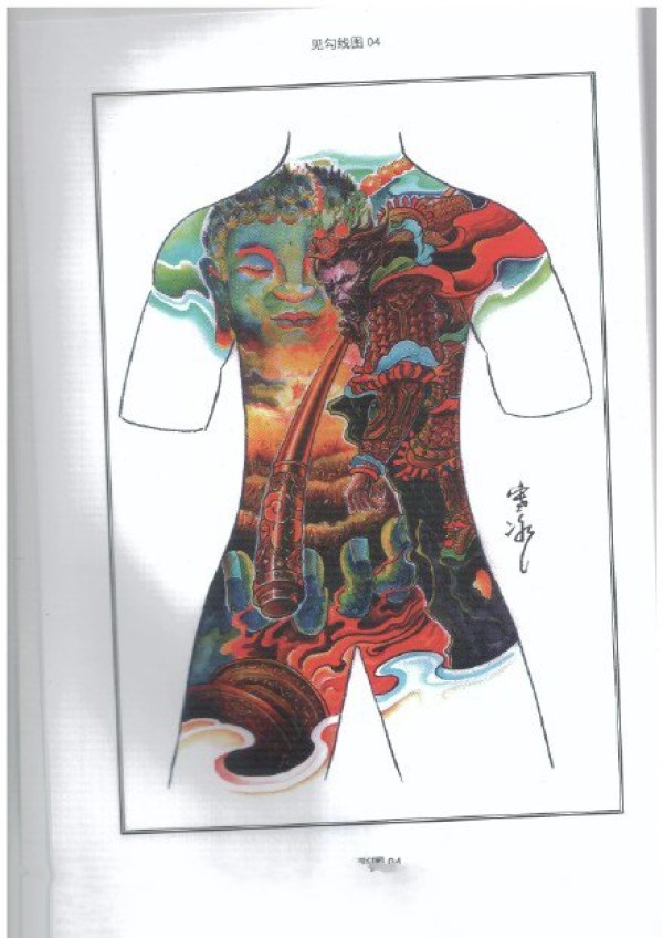 一组满背大气九龙拉棺纹身图案作品和手稿