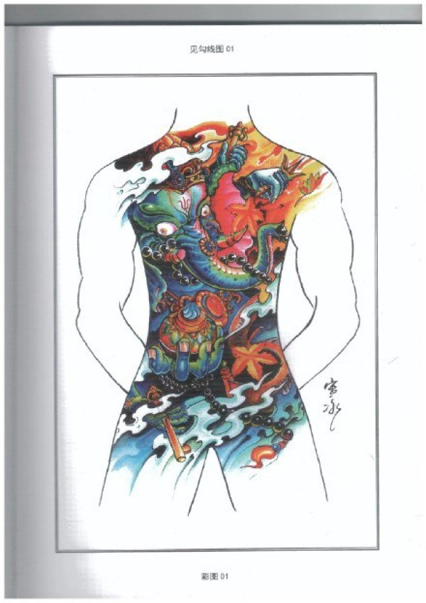 一组满背大气九龙拉棺纹身图案作品和手稿