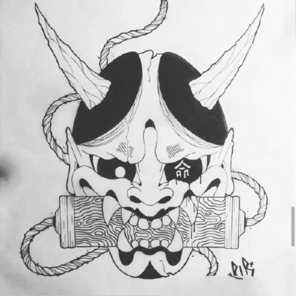 怪异恐怖风格的一组日本般若纹身手稿图案