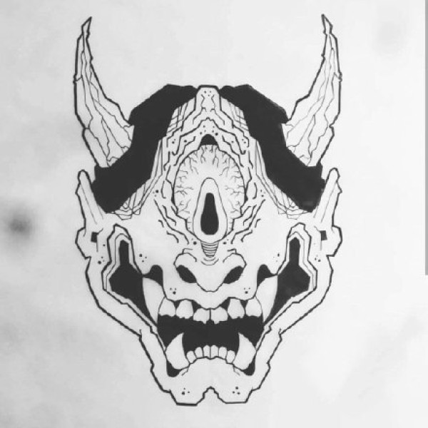 怪异恐怖风格的一组日本般若纹身手稿图案