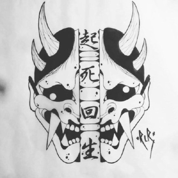 怪异恐怖风格的一组日本般若纹身手稿图案