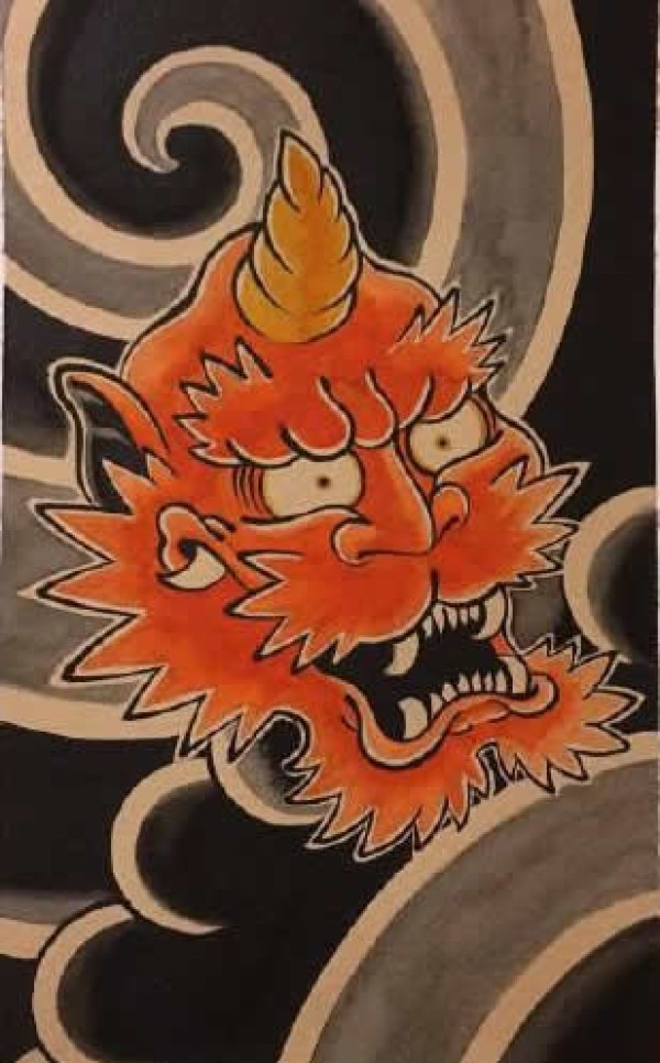 传统艺妓般若纹身图案手稿