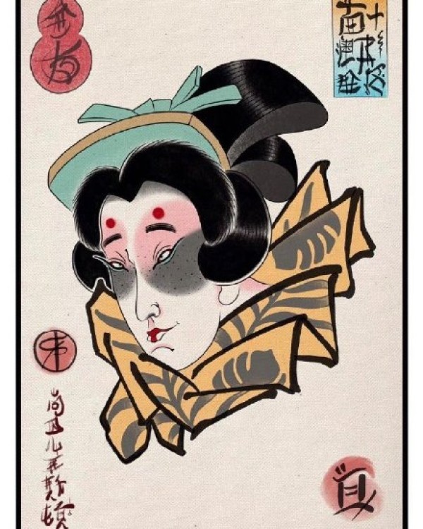 传统艺妓般若纹身图案手稿