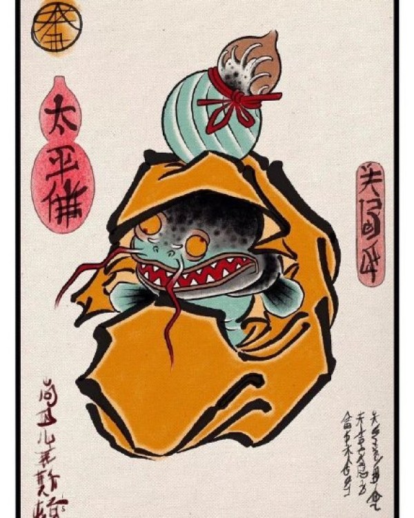 半甲唐狮手稿 传统的9款唐狮主题半甲纹身手稿图片