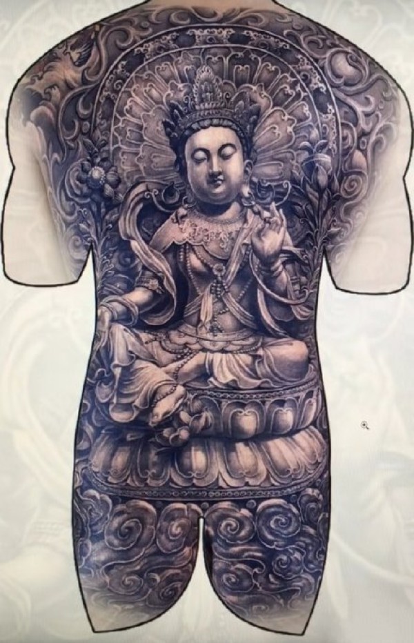 一组满背大气九龙拉棺纹身图案作品和手稿