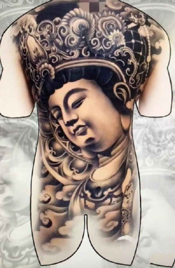 一组满背大气九龙拉棺纹身图案作品和手稿