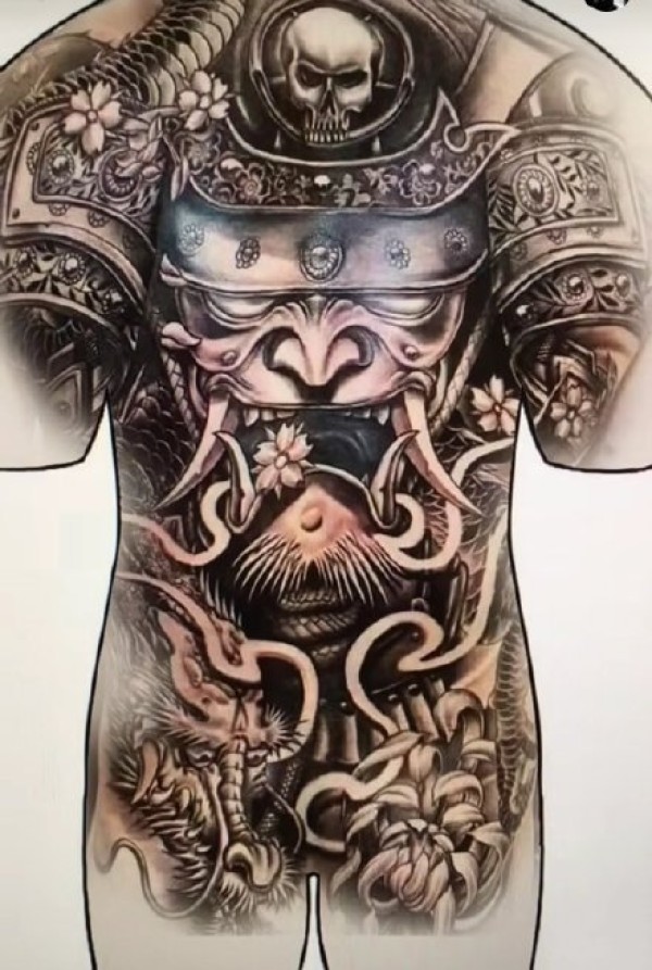 一组满背大气九龙拉棺纹身图案作品和手稿