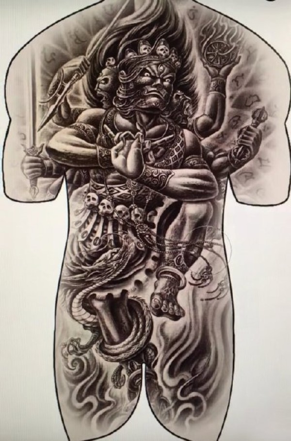 一组满背大气九龙拉棺纹身图案作品和手稿
