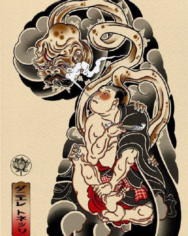 一组满背大气九龙拉棺纹身图案作品和手稿