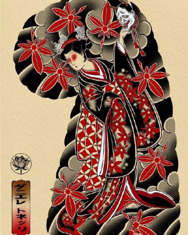 半甲唐狮手稿 传统的9款唐狮主题半甲纹身手稿图片
