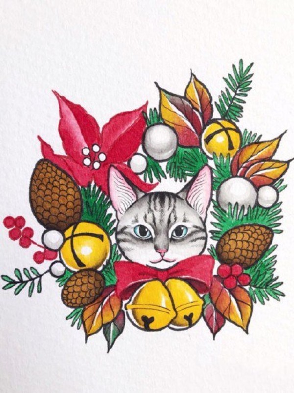 一组17组可爱萌宠小猫咪的纹身素材手稿