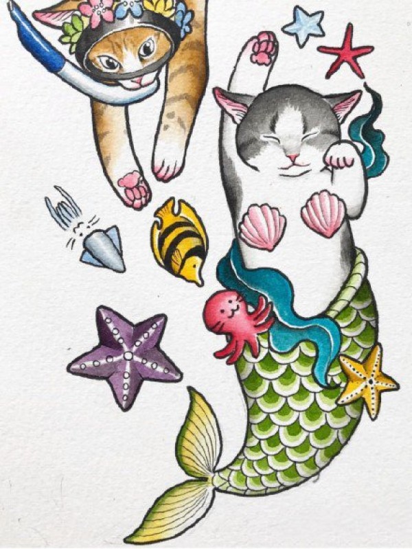 一组17组可爱萌宠小猫咪的纹身素材手稿