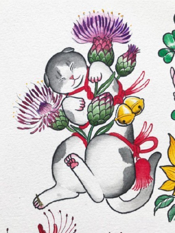 一组17组可爱萌宠小猫咪的纹身素材手稿
