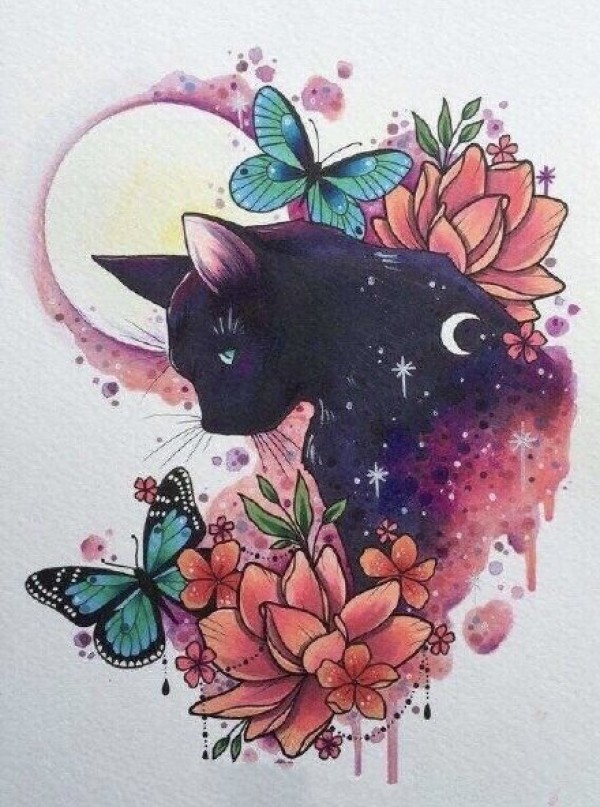 梦幻唯美的一组水彩色纹身手稿图案