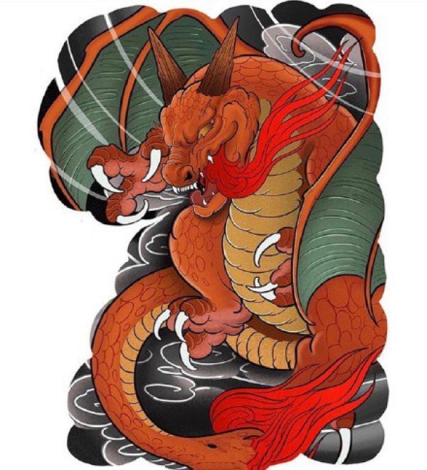 一组满背大气九龙拉棺纹身图案作品和手稿
