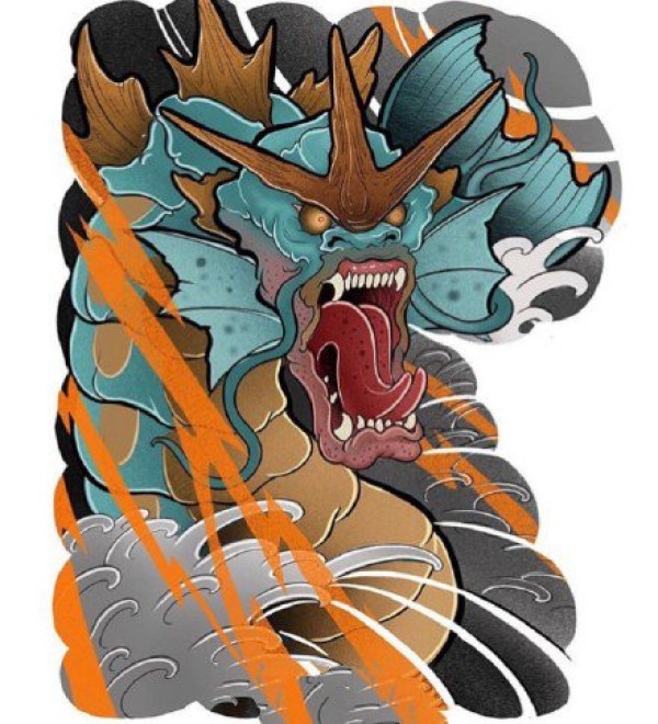 一组满背大气九龙拉棺纹身图案作品和手稿