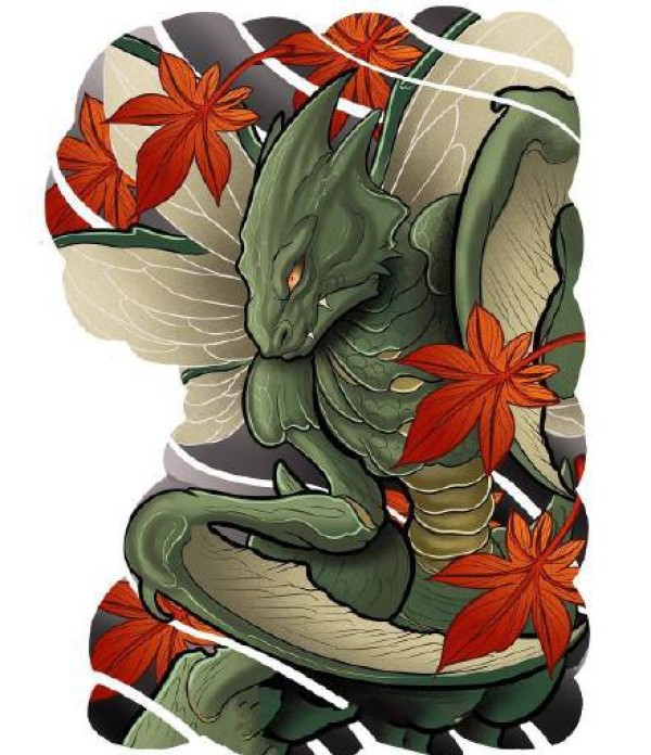 一组满背大气九龙拉棺纹身图案作品和手稿
