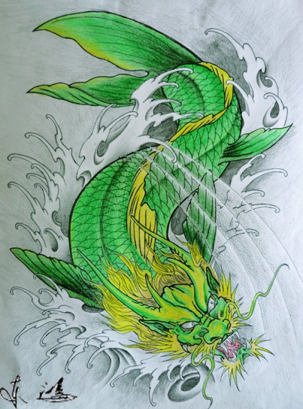 传统的30款鲤鱼纹身手稿图片赏析