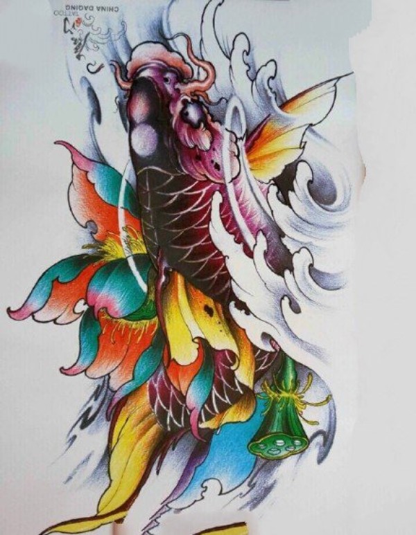 传统的30款鲤鱼纹身手稿图片赏析