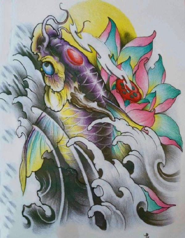 传统的30款鲤鱼纹身手稿图片赏析