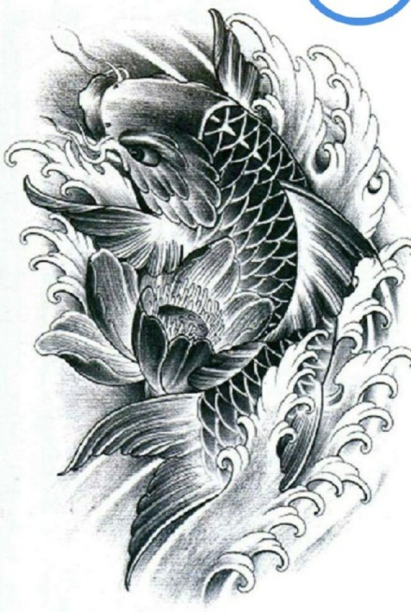 传统的30款鲤鱼纹身手稿图片赏析