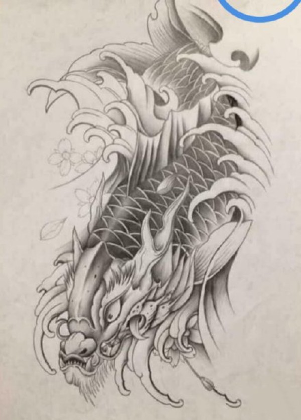 传统的30款鲤鱼纹身手稿图片赏析