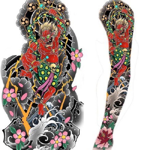 一组满背大气九龙拉棺纹身图案作品和手稿