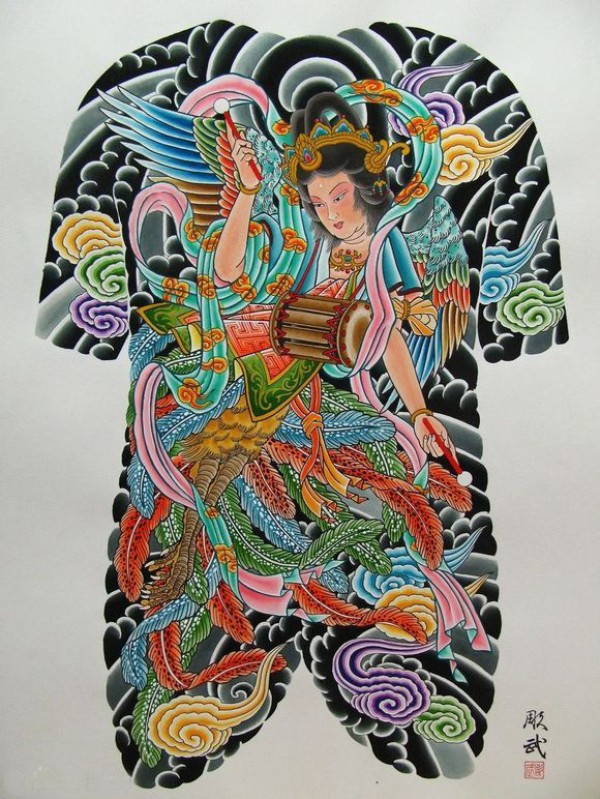 一组满背大气九龙拉棺纹身图案作品和手稿
