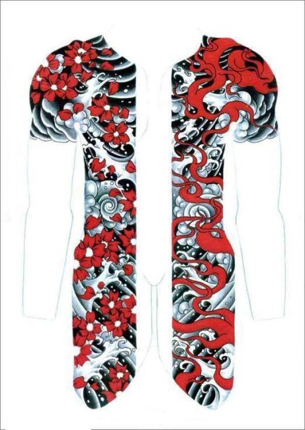 一组满背大气九龙拉棺纹身图案作品和手稿
