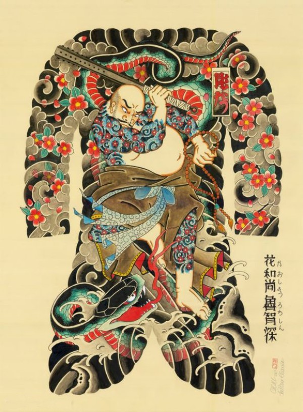 一组满背大气九龙拉棺纹身图案作品和手稿
