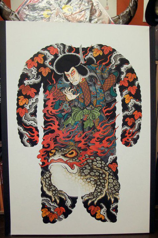 一组满背大气九龙拉棺纹身图案作品和手稿