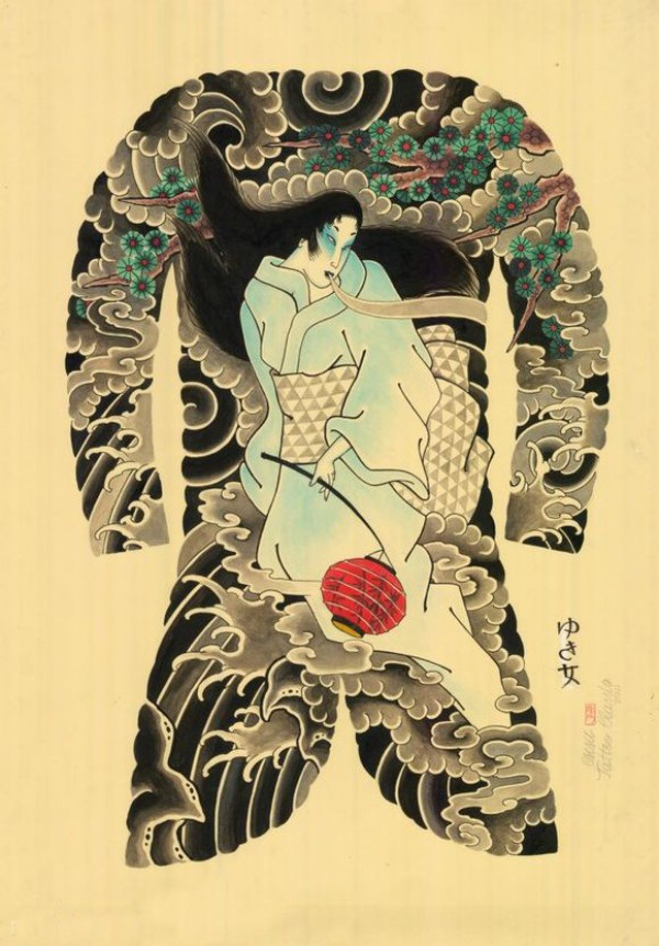 一组满背大气九龙拉棺纹身图案作品和手稿