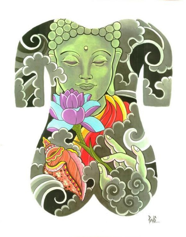 日式大板雾满背纹身手稿