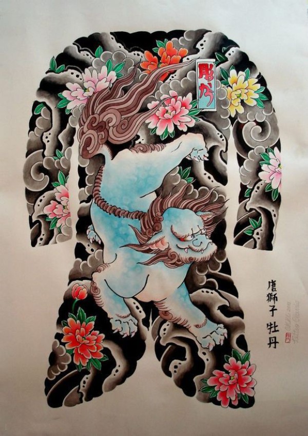 半甲唐狮手稿 传统的9款唐狮主题半甲纹身手稿图片
