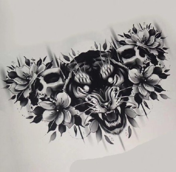 半甲唐狮手稿 传统的9款唐狮主题半甲纹身手稿图片