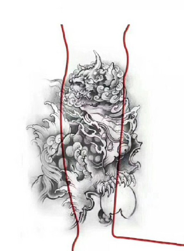 半甲唐狮手稿 传统的9款唐狮主题半甲纹身手稿图片