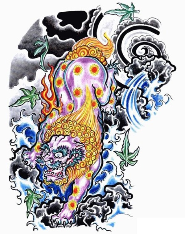 半甲唐狮手稿 传统的9款唐狮主题半甲纹身手稿图片